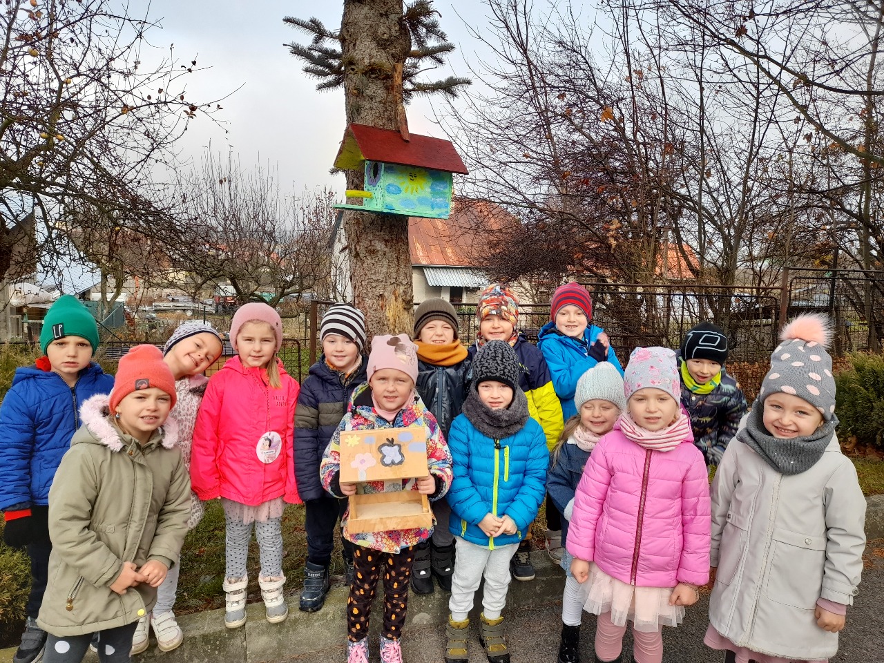 V našej triede Sovičky sme sa rozhodli pomôcť vtáčikom v zime, aby mali kde prezimovať a občas ich aj prikrmovať, aby sa im v zime lepšie žilo. Okrem toho, že ich deti celý týždeň poznávali bola vyhlásená súťaž o vytvorenie najkrajšej vtáčej búdky. Úlohou detí bolo vyrobiť doma s pomocou rodičov, starých rodičov, susedov, kamarátov vtáčiu búdku. Deti doniesli nádherné vtáčie búdky, ktoré sa páčili celej škôlke a veru aj našim malým kamarátom vtáčikom. 15 vtáčích búdok sme rozvešali po celom školskom dvore a nasypali im potravu a veruže na druhý deň sme zistili že sa tam vtáčikom veľmi páči a aj im veľmi chutí Pravidelne im chodíme sypať potravu a pozorovať ich.