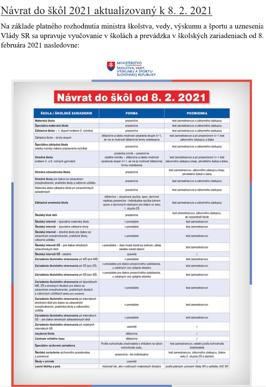 Návrat detí do škôl 8.2.2021